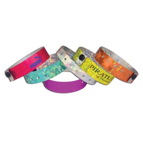 - Feature : Width 3/4" / Gorgeous and glamorous Liquid Glitter wristbands will wow your guests while providing secure ID. / Colorful, holographic wristband with a locking snap to prevent transfer. / Choose from 11 dazzling colors. / One size fits all.