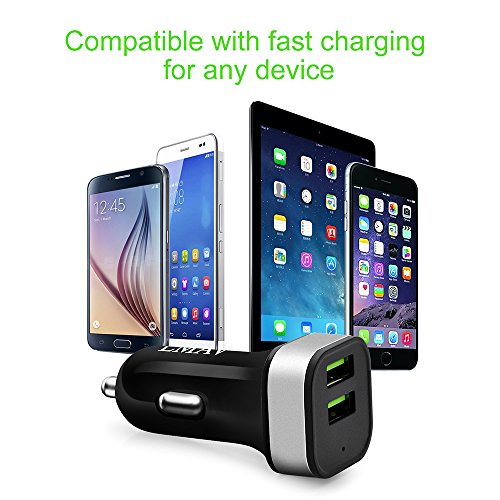 2017 Fast Car Charger, 48W 6A Dual Smart USB Rapid Car Charger for Apple & Android Devices, Samsung Galaxy S8 Plus, Note 8, LG G6, Sony Xperia XZ, iPhone 7 Plus iPads Pro, Nexus 5X and More