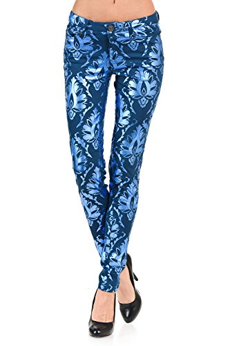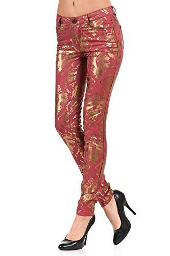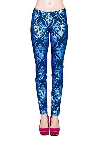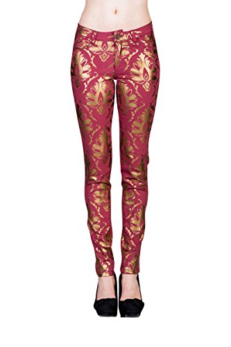 VIRGIN ONLY Women's Damask metallic skinny color pants