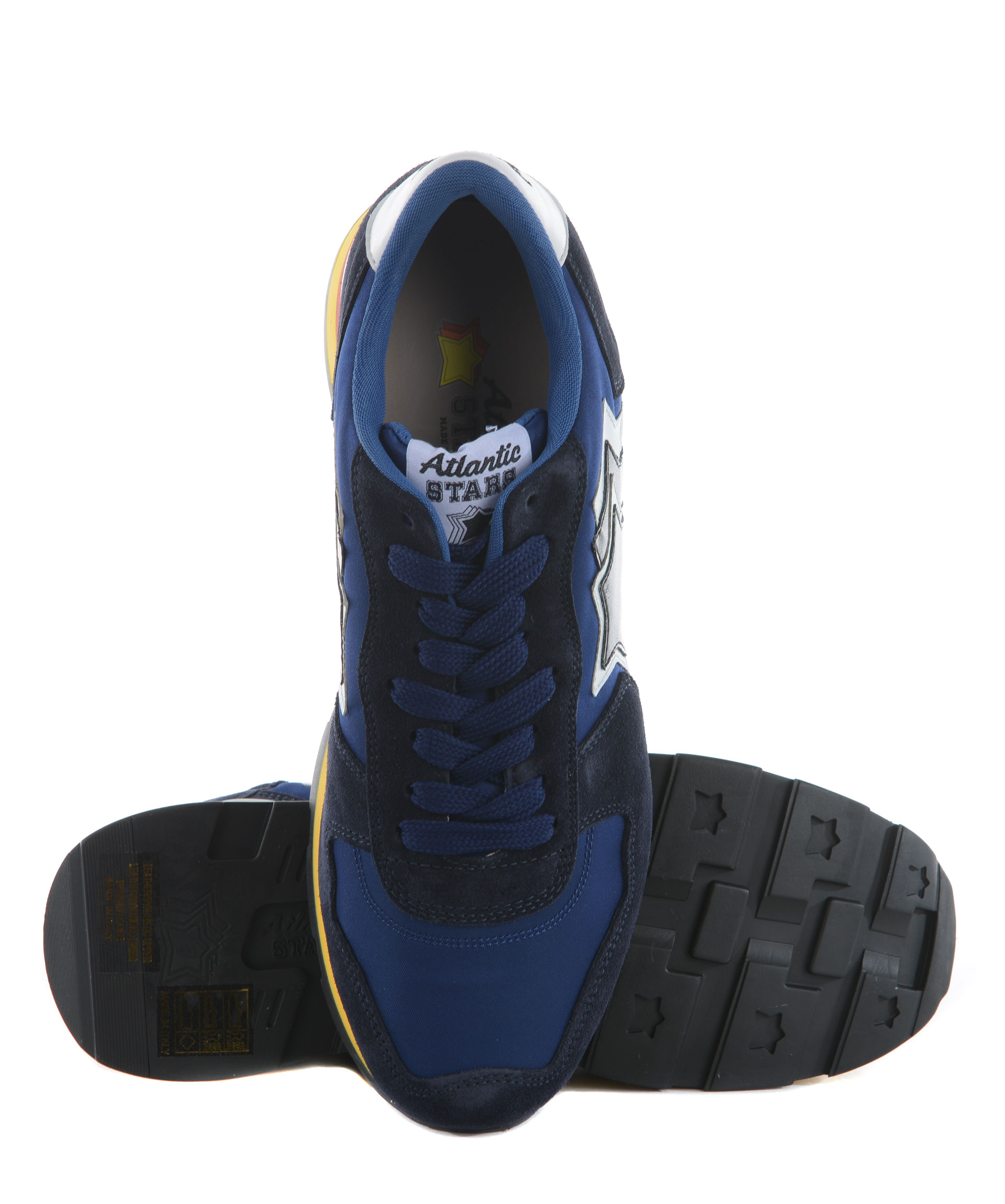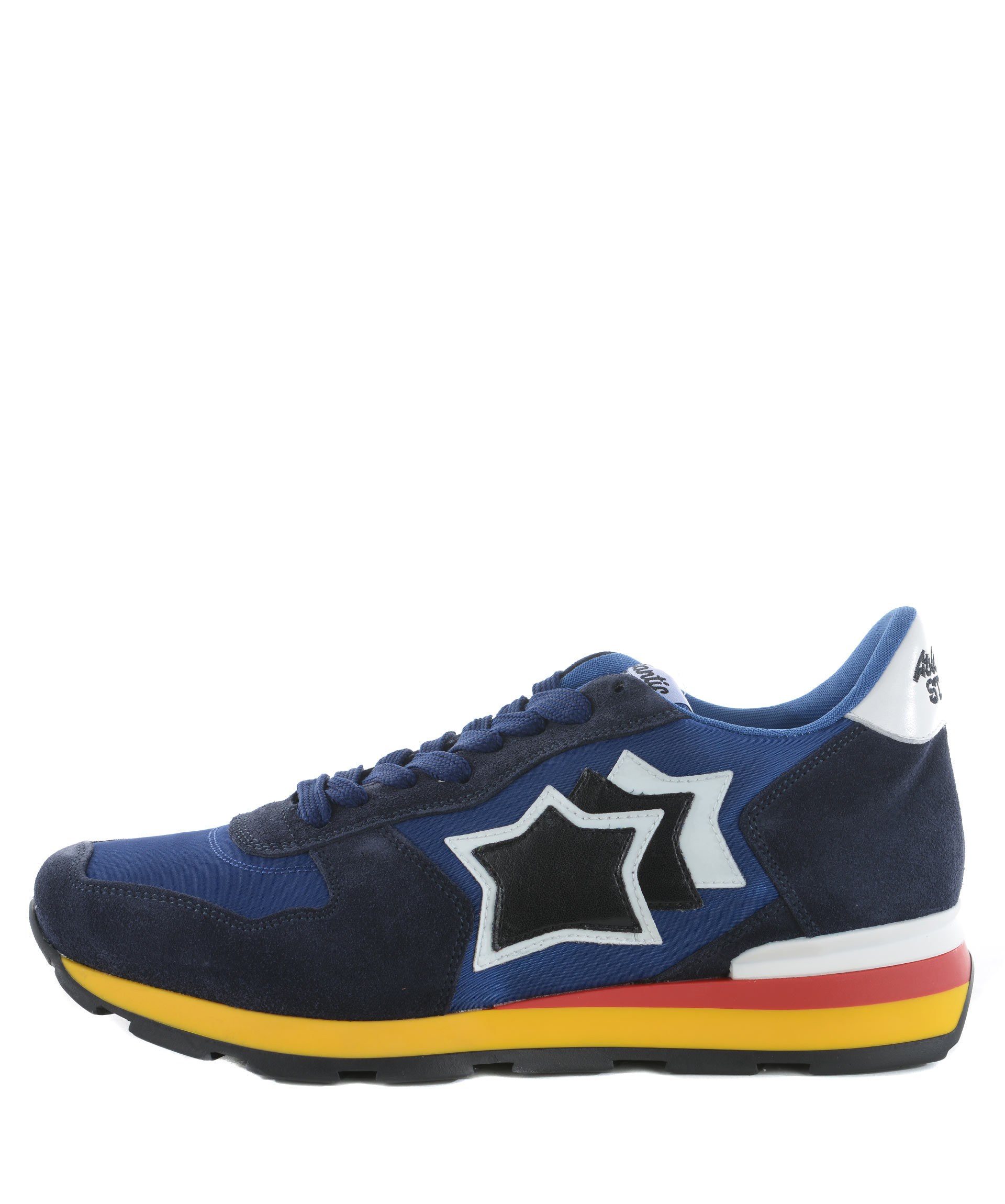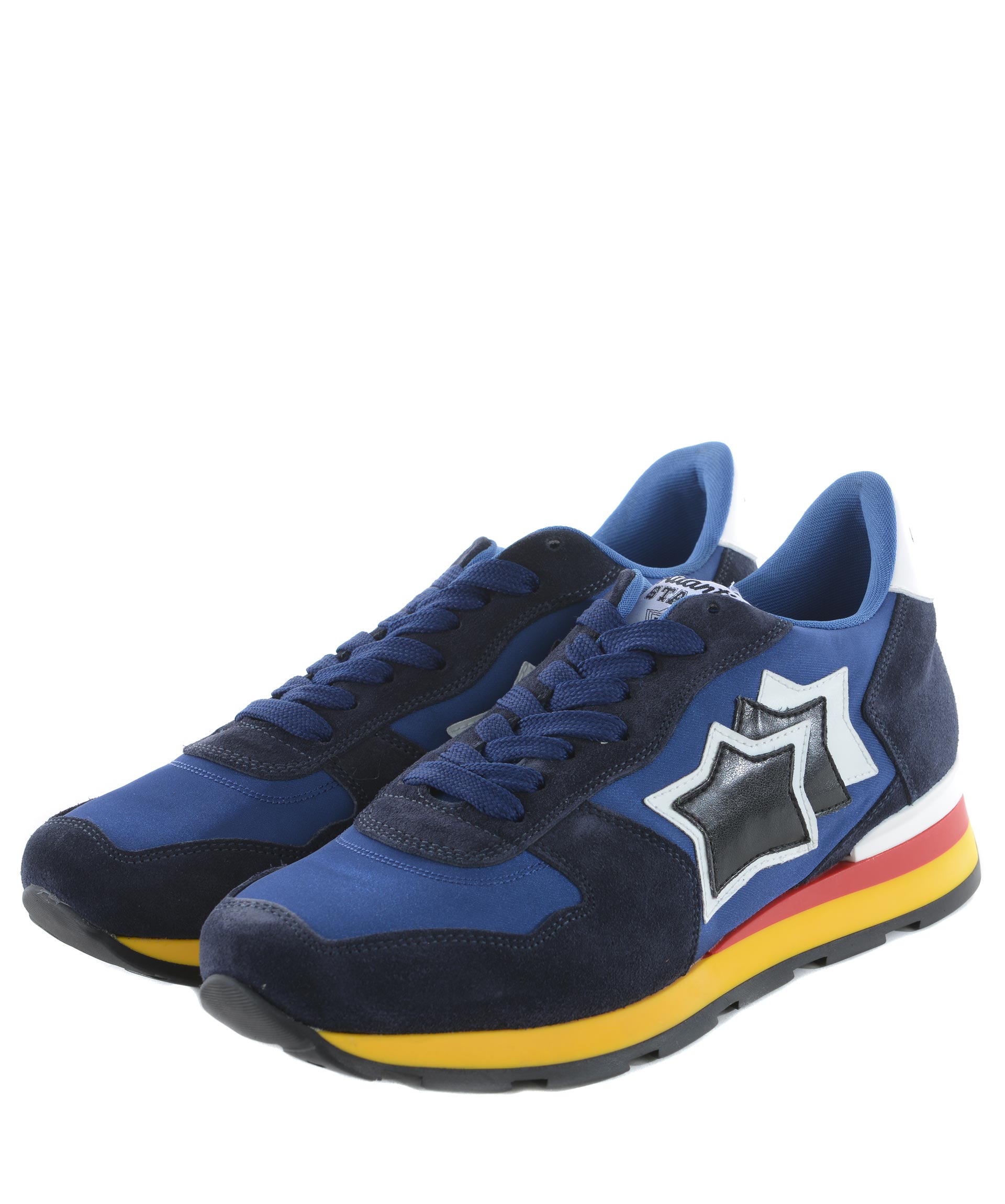 Sneakers uomo Atlantic Star in pelle scamosciata e nylon Blu. Stringate. Logo laterale in pelle applicato. Logo ricamato sul retro. Suola 35 mm in gomma bicolore. Misura in foto 41