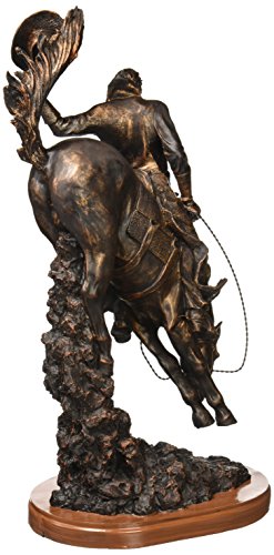 StealStreet SS-UG-BSC-325 Cowboy Holding Hat While Riding on Horse Statue Tone, 12", Bronze