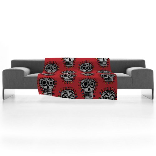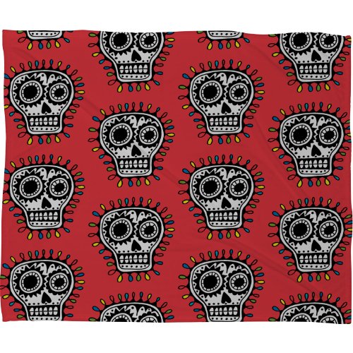 DENY Designs Andi Bird Sugar Skull Fun Red Fleece Throw Blanket, 30 x 40