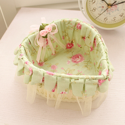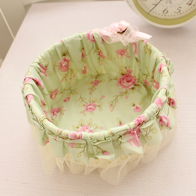 Sophie series of romantic roses small candy basket, yellow and green two colors, small fresh color oh. Exquisite decorative ruffles week dotted pink flowers, for desktop storage, put some small snacks, candy these oh。