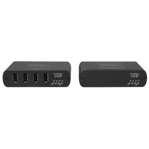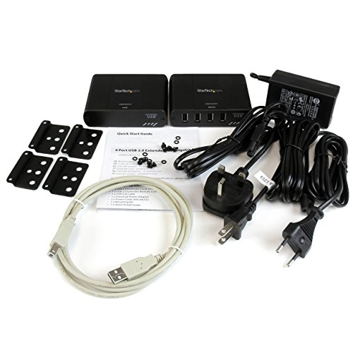 Extend USB 2.0 devices up to 330ft (100m) over a Gigabit Ethernet LAN, or dedicated Cat5e/6 cabling - The USB2G4LEXT2 4-Port USB 2.0 Extender System lets you extend USB devices over a Gigabit Ethernet Local Area Network (LAN), or through dedicated Cat5e/6 cabling up to 330ft (100m).Connecting over your existing IP LAN avoids the hassle and cost of running new infrastructure cabling and provides an increased and highly scalable overall extension distance. When channeling through multiple switches at 100m intervals, the maximum extension distance resets at each switch location, making it easy to span multiple floors in a home or office setting. For further versatility you can connect the local and remote units via a single Cat5e or better cable. Unlike 10/100Mbps USB extenders, this versatile USB extender leverages the full data transfer potential of your USB 2.0 peripherals up to 480Mbps, to deliver lag-free performance that enables support for extending isochronous devices such as webcams or microphones. Compatible with USB 2.0, and 1.1 devices with support for up to 600mA of power per port, the USB over Cat5e extender supports most USB peripherals including flash drives, webcams, keyboards, mice and drive enclosures. A flexible solution for business or industrial applications, this rugged metal enclosure includes wall-mounting brackets and simple plug-and-play installation with no software or drivers required. Backed by a StarTech.com 2-year warranty and free lifetime technical support.Feature