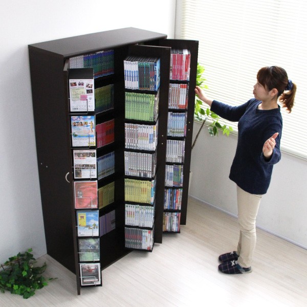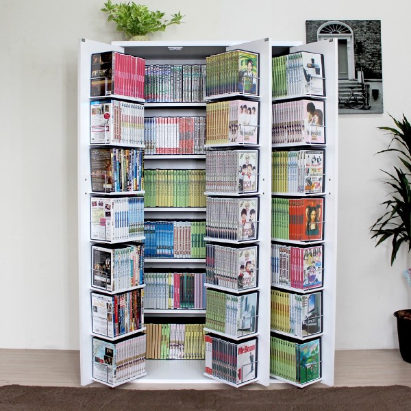 ■最大収納DVDで638枚、CD492枚(奥面棚のみ) コミック638冊収納可能な書棚ストッカー収納庫