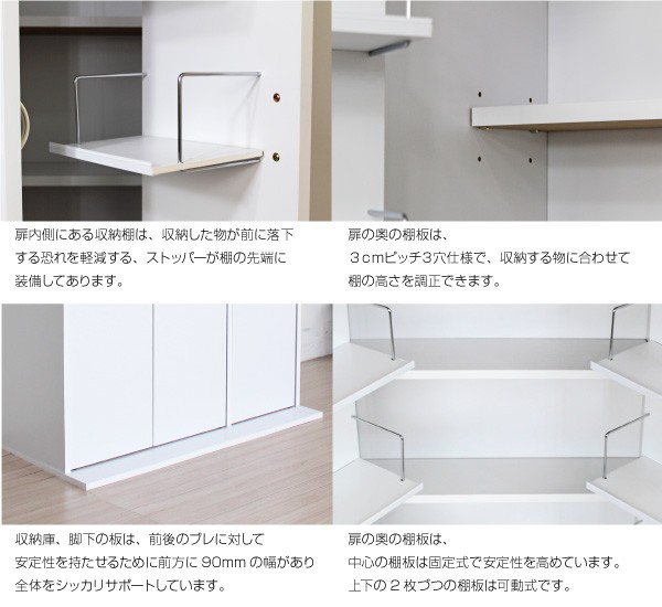 右:奥棚可動板(4枚)内寸/幅28×奥行13.7(cm)(中央棚は固定棚です)