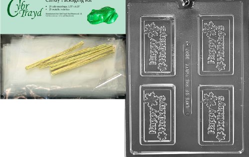 Cybrtrayd "Happy Holidays Business Card" Business Card Chocolate Candy Mold with Packaging Bundle of 25 Cello Bags, 25 Gold Twist Ties and Chocolate Molding Instructions