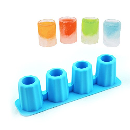 Silicone Ice Shot Glass Mold,4-cups Square Blue Ice Cube Tray,Jelly Tray ,Cake Cup Mold ,Food Grade Silicone Ice Mold-Blue