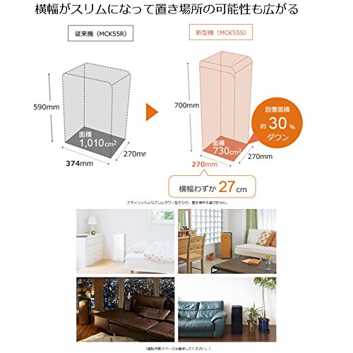 슬림 타워형으로 혁신하고, 크기의 소형화라고 사람이 느끼는 운전음의 저감을 실현.콤팩트타입의 「가습streamer 공기 청정기」.