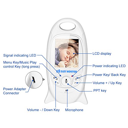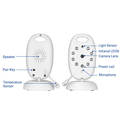 -. Feature : This GHB Baby monitors can greatly help parents in daily life, especially make parents do housework more freely. With this baby monitor in hand, you can always see your baby when you are deal with the daily housework in other rooms, kitchen and yard. / Two way audio talk. This baby monitor has the two way audio talk function, so when your baby is crying, you can talk back first to soothe your baby. From the video, you can see your baby anytime / Night Vision function enable you to Keep an eye on your baby all night in your bedroom, you will no need to go to baby's room, which may wake up your baby. / Temperature monitoring function is very convenient for you to pay attention to the temperature in the environment. / Easy to set up. Plug and play, very easy to install this wireless baby monitor. 2.0" inch LCD color display is convenient for parent to see baby anytime