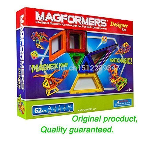 MAGFORMERS MAGNETIC BUILDING CONSTRUCTION SET - 62 PIECE DESIGNER SET WITH COLOR BOX