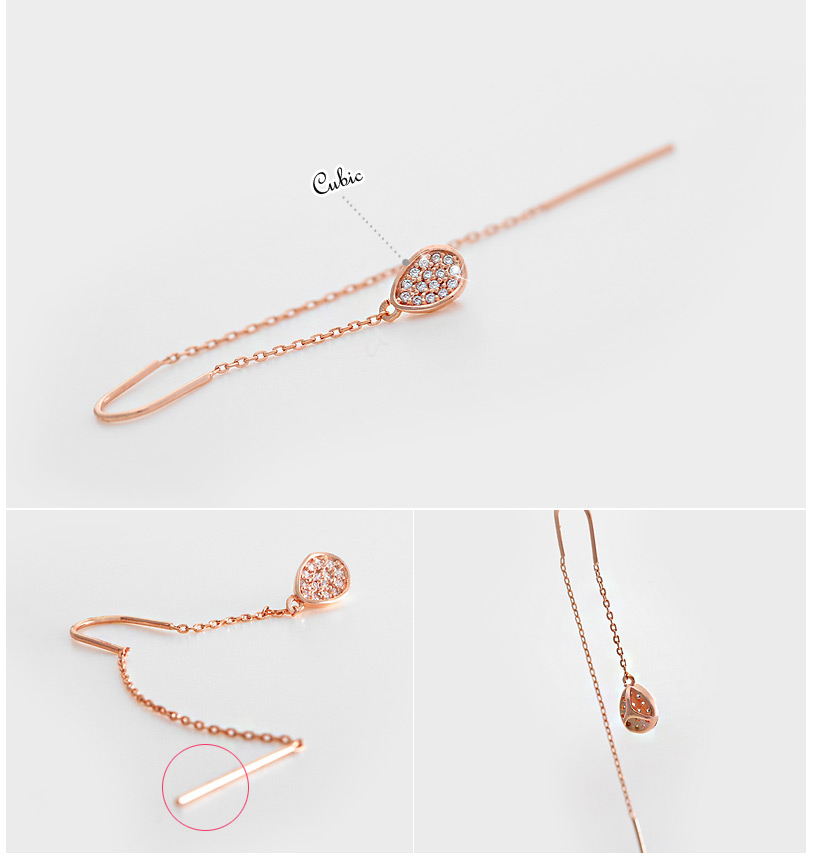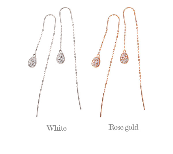 미니멀한 물방울 팬던트의 큐빅장식이 블링블링 러블리하고 찰랑거리는 체인장식이 독특한 매력을 주는 이어링:)