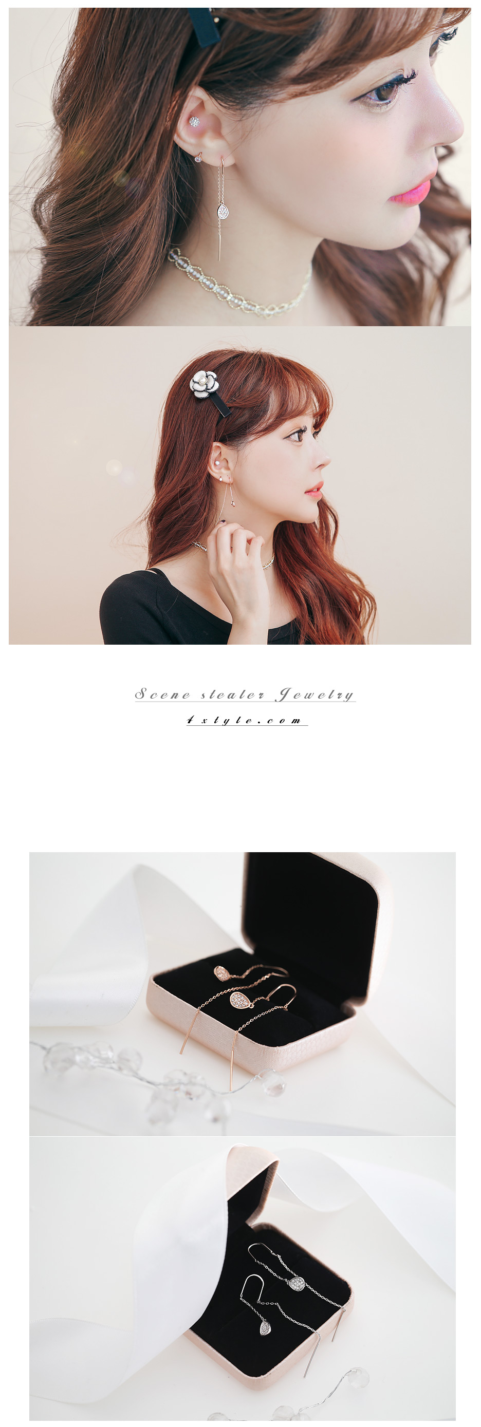 슬림한 라인이 여성스러운 티어 홀릭 귀걸이 입니다.