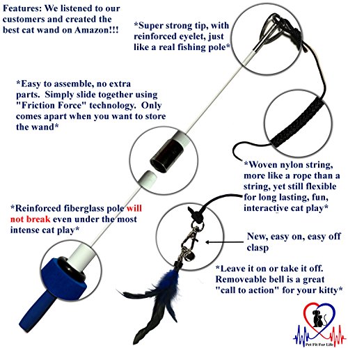 ★ ANOTHER GREAT CAT WAND FROM PET FIT FOR LIFE – "Cat Teaser Starter Pack" Premium quality at a bargain basement price. We listened to our customers and created the most durable cat wand sold on Amazon. Made from high quality carbon fiber, our new wand is guaranteed not to break even if your cat plays rough. Seriously, this is one tough cat wand!