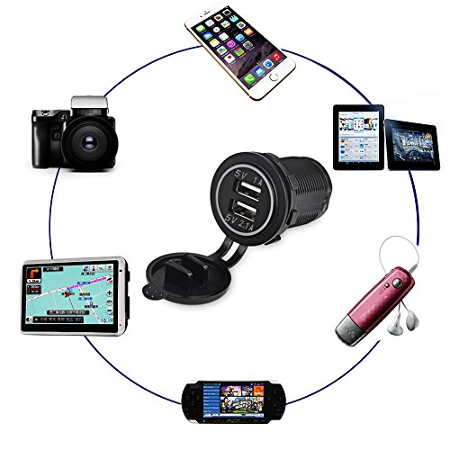 VANJING Waterproof Dual 2 USB Outlet 1A & 2.1A Port Socket Charger Power Adapter 12V for Car Boat Motorcycle (Blue)