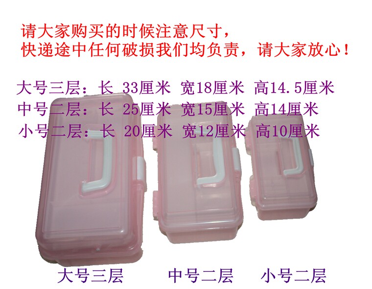 大号三层箱(长方形):长:33厘米 宽:18厘米 高14.5厘米