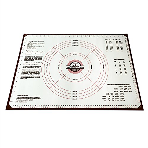 - PERFECT BAKERS WORK SURFACE: Our specially designed silicone pastry mat measures 25in (63.5cm) by 18in (45.5cm). It has 6in to 14in diameter circular makings for crafting pies, tortillas, etc. Multi-purpose silicone pastry mat with measurements and conversions info such as grams to ounces, milliliters to fluid ounces and oven temperature from Celsius to Fahrenheit.