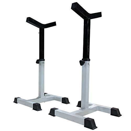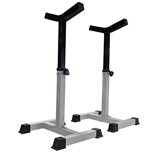 Features:? - Built with a 16" wide top catch to protect your from falling weight or failed lifts. - Sturdy and durable steel construction provides a 700 LB weight capacity.? - The adjustable height steps up in 2" increments to fit all athletes. - Quick pin makes adjusting simple and easy for no down time between exercises.? - Sold in pairs, so you are ready to set up and lift.?