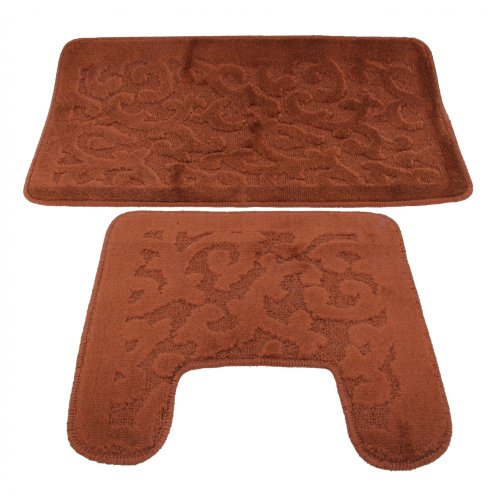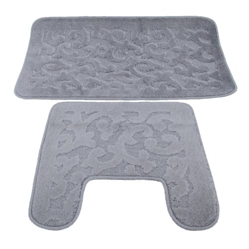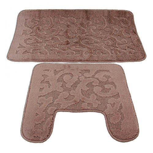 -. Title : Plain 2 Piece Bath Mat Set In Flower & Swirl Design (10 Colors)