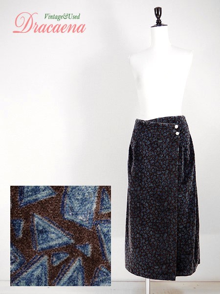 幾何学模様・総柄パターンの巻きベロアスカート。