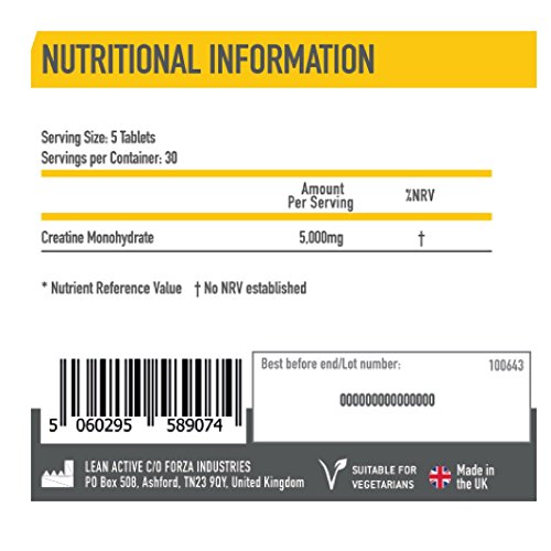 -. Binding : Health and Beauty -. Brand : LEAN Nutrition -. EAN : 5060492540854 -. Feature : INCREASE PERFORMANCE - A pure creatine monohydrate supplement to help increase physical performance and power. Ideal for high intensity workouts or sports that require short bursts of energy / HIGH STRENGTH - Each creatine tablet contains 1000mg of pure creatine monohydrate. A firm favourite for bodybuilders, athletes, personal trainers and sports professionals look for to enhance their workouts with a safe and effective creatine supplement / EFFECTIVE SUPPLEMENT - Creatine supports those looking to increase power, strength, speed and lean mass / LEAN ESSENTIALS RANGE - Part of LEAN Nutrition's fundamentals range - providing you trusted supplements for active lifestyles / LARGE SUPPLY - Each Creatine Monohydrate bottle contains 150 creatine tablets that are easy to swallow with water and are suitable for vegetrians -. IsAdultProduct : 0 -. Label : FORZA Industries -. Manufacturer : FORZA Industries -. ProductGroup : Health and Beauty -. ProductTypeName : HEALTH_PERSONAL_CARE -. Publisher : FORZA Industries -. Studio : FORZA Industries -. Title : LEAN Nutrition Creatine Monohydrate Tablets - Creatine Capsules For High Intensity Workouts - 1000mg - 450 Tablets
