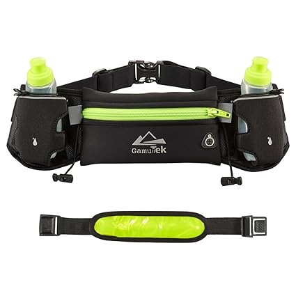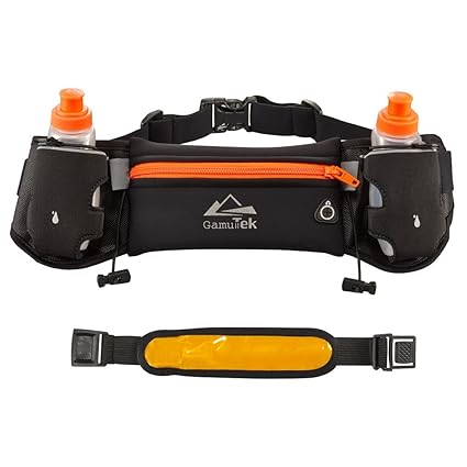 [Product Information]- ALWAYS BE HYDRATED: When you run and walk daily you need a convenient belt with water bottles to keep you hydrated all the time. Carrying a bag on your back is simply not convenient. On the other hand this, running belt is very comfortable to wear! With 12-oz total capacity, you have enough water each time you want it. And if you want to refill the bottles, it can be done in seconds!