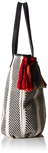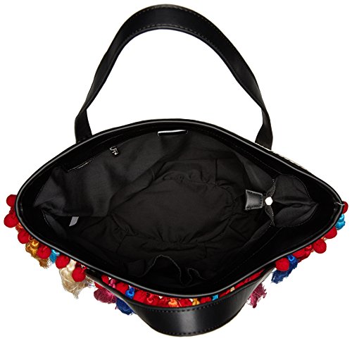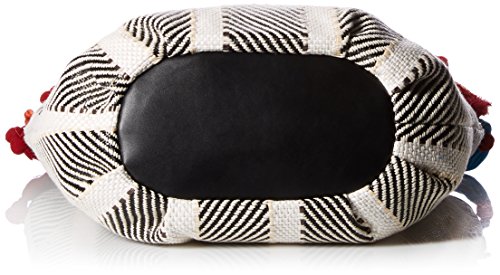 Clyde canvas tote with pom poms and yarn tassel embroidery, double flat handles
