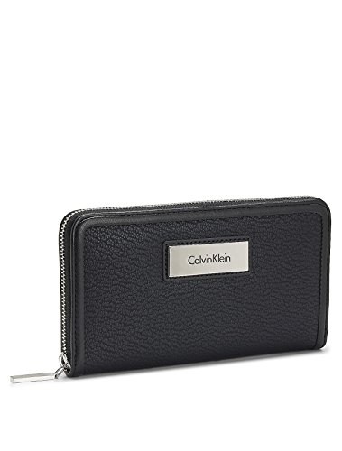 -. Feature : Faux leather wallet, llover pebbled texture / Zip closure, Logo plaque on front / Interior zip pocket, 2 large bill slots / 12 card slots, fully lined / Dimensions: 7.6" wide x 4.1" tall x 1" deep