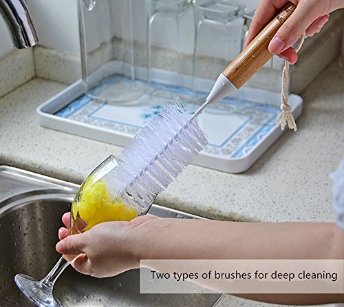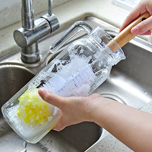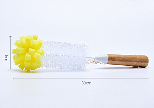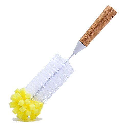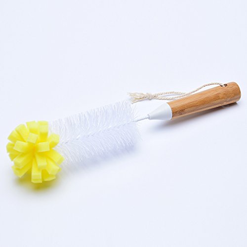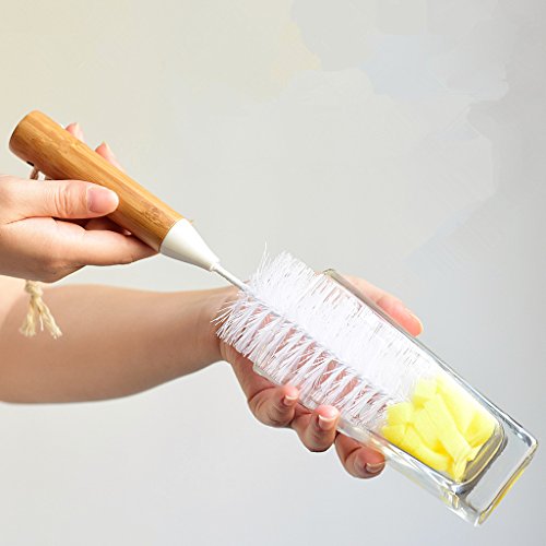 Huibot Bottle Brush Bamboo Long Handle Bristle Sponge Bottom for Narrow Neck Bottles Coffe Cups Glass and Tea Kettle