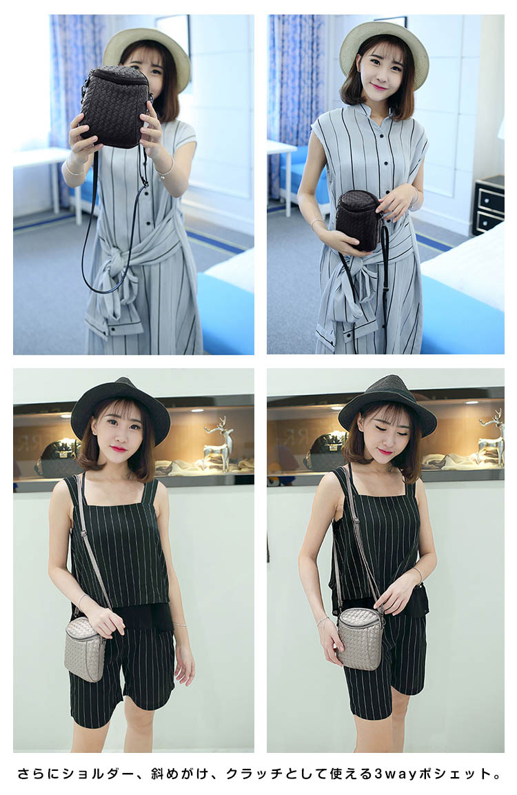 | 今人気☆選べる4色展開のコンパクトショルダーバッグ!計算された絶妙なサイズ感で軽量コンパクトながら財布、スマホ、化粧品の収納が可能。さらにショルダー、斜めがけ、クラッチとして使える3wayポシェット。お手入れが簡単でデイリーにお使いいただけるアイテムです。 | |