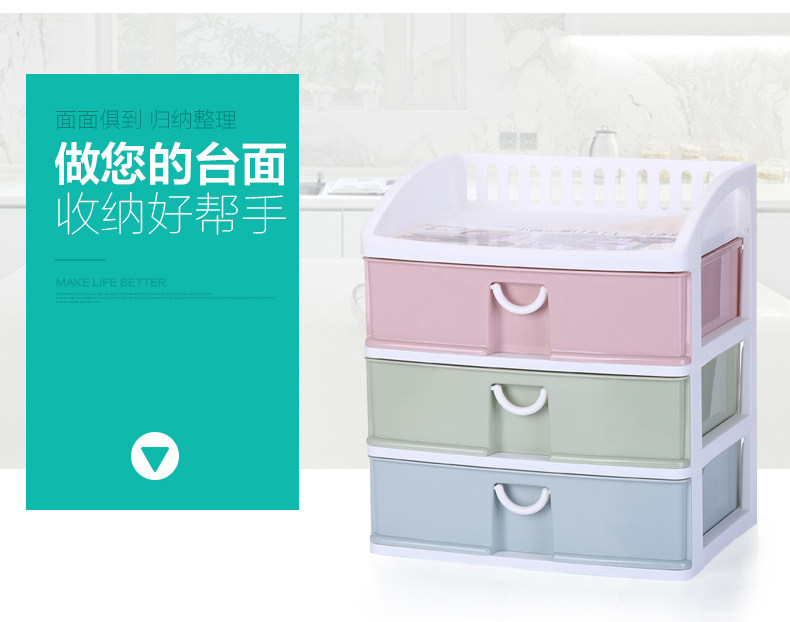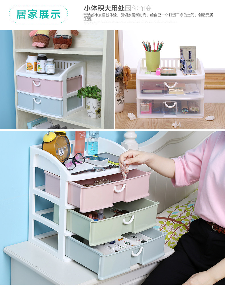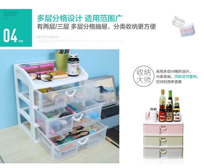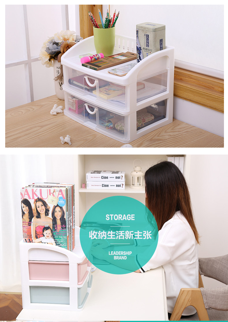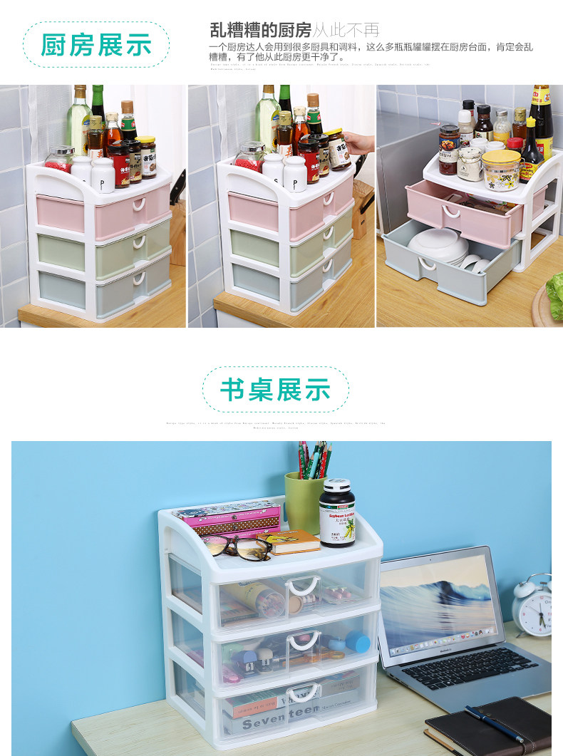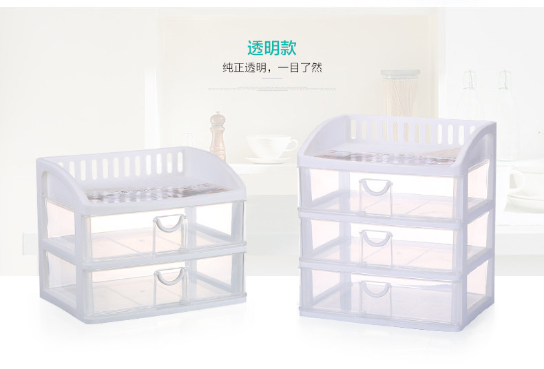 󰄬办公桌面收纳盒塑料多层小抽屉式文件化妆品收纳柜杂物饰品整理箱