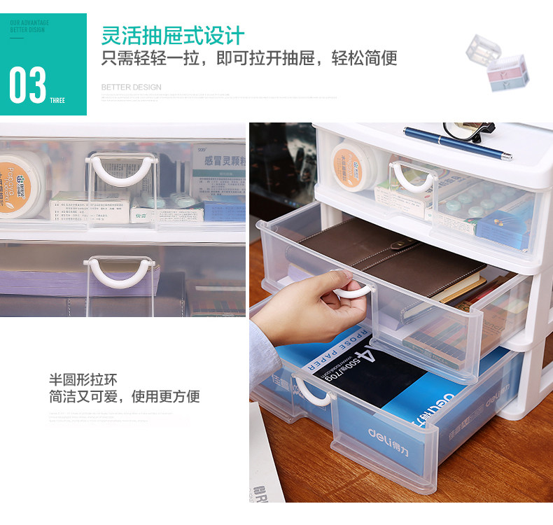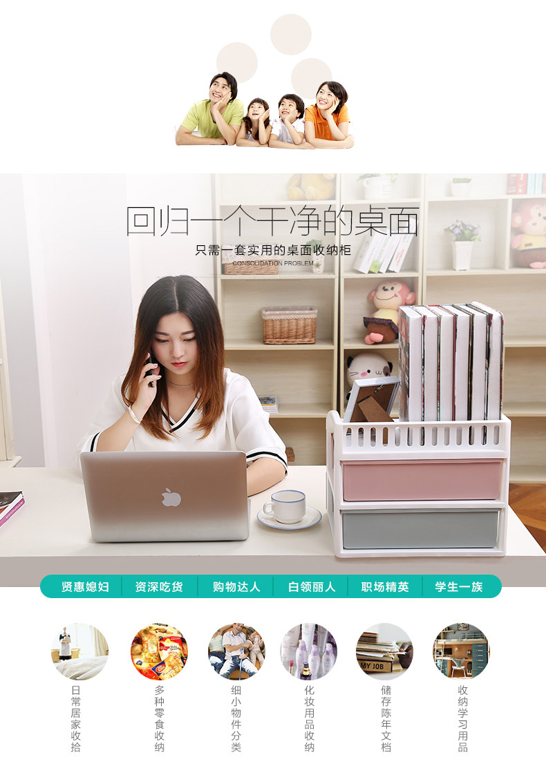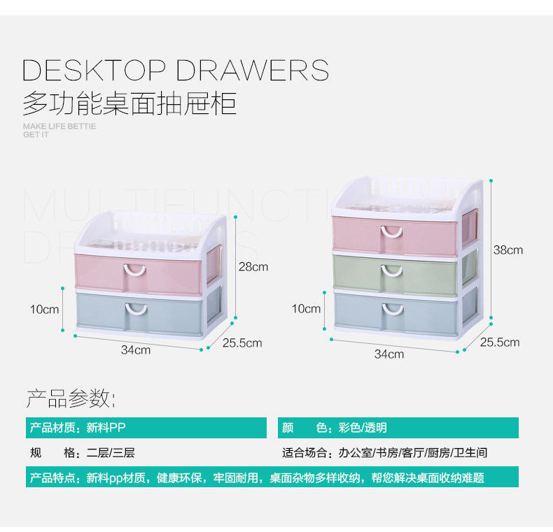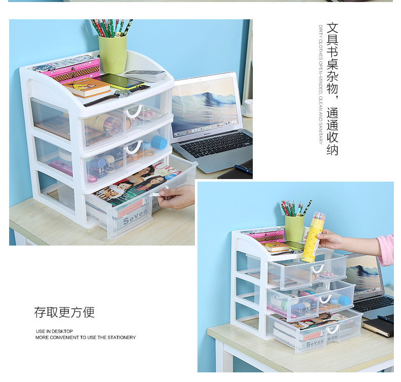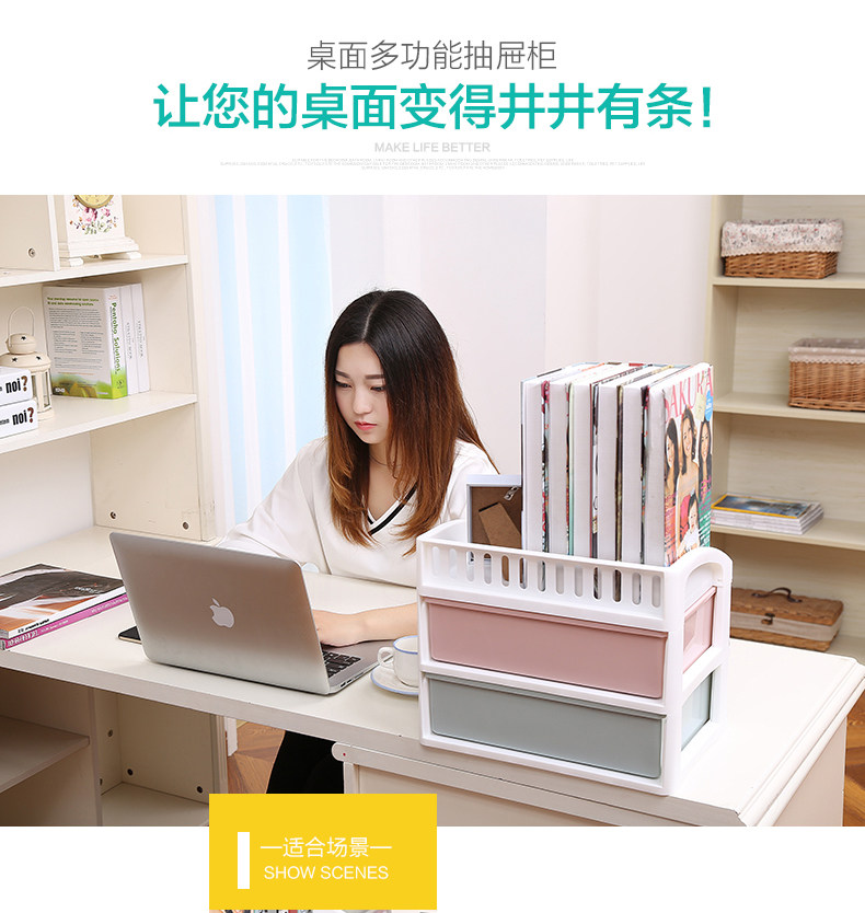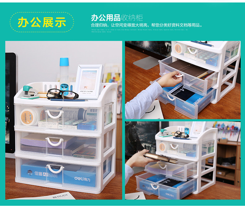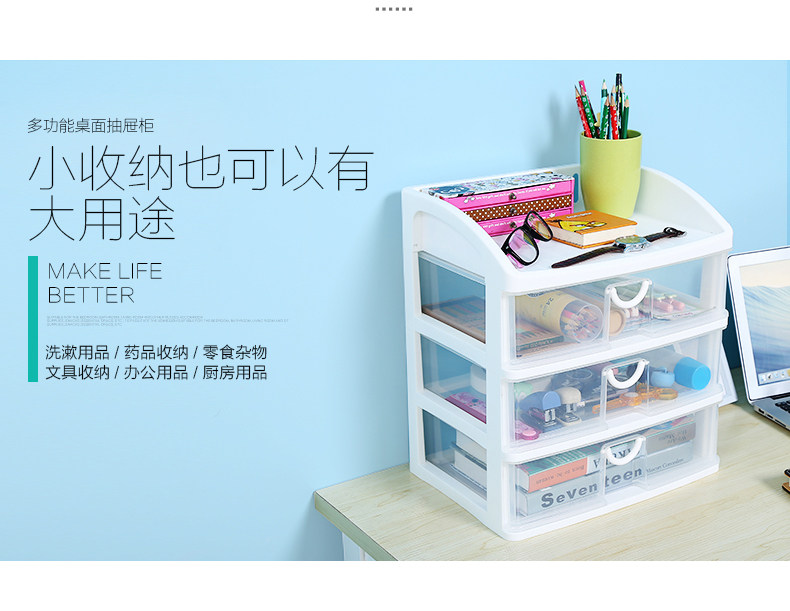 󰄬办公桌面收纳盒塑料多层小抽屉式文件化妆品收纳柜杂物饰品整理箱