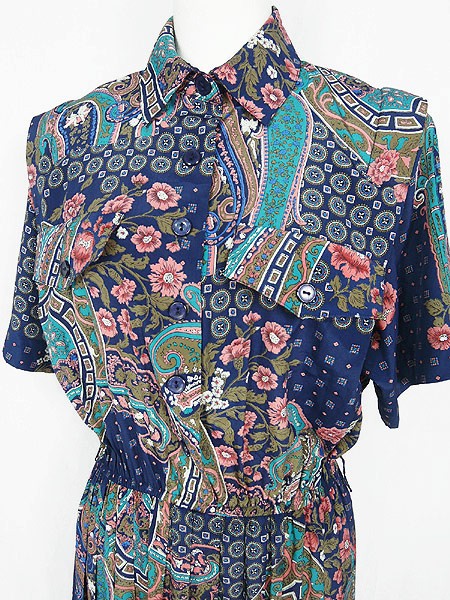 Ladies ブランド カラー紺・ピンク・ターコイズブルー 他 メール便不可 コンディション★★★ 素材ポリエステル 表記サイズ4 実寸サイズ 着丈 119 cm 身幅 42 cm 肩幅 38 cm 袖丈 24 cm ウエスト 56cm 〜 94cm (22インチ〜37インチ) ※ウエスト・ヒップ以外は平置き採寸【code】#b