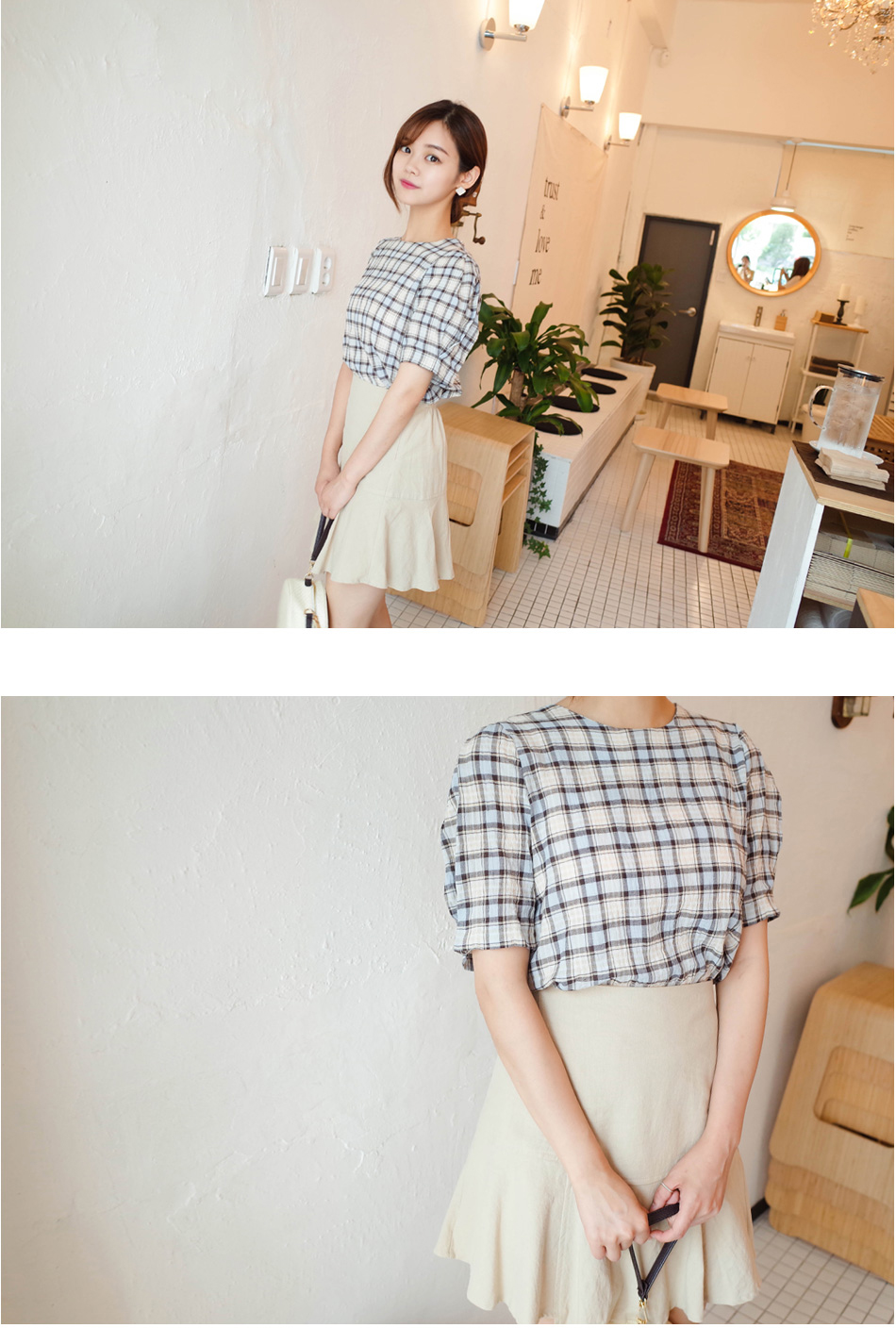 체크패턴의 블라우스예요:)
