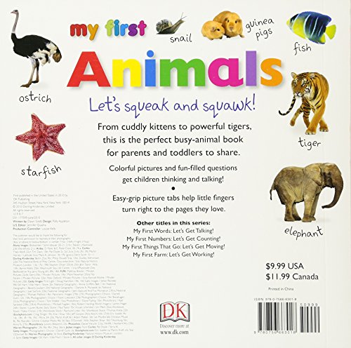 My First Animals: Let's Squeak and Squawk! helps children develop first language skills by introducing them to a world of incredible animals. Each tabbed section focuses on a different category of animals, from birds to mammals to sea creatures.