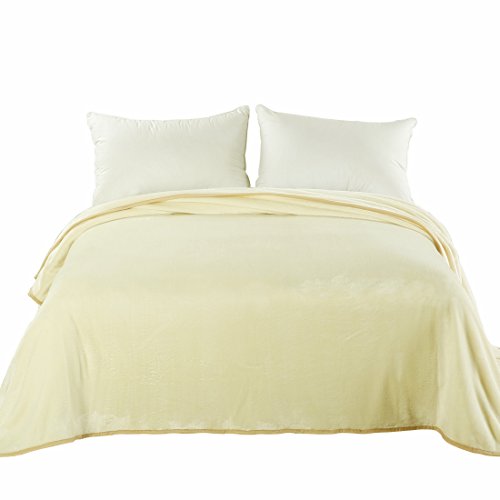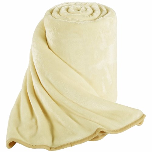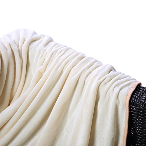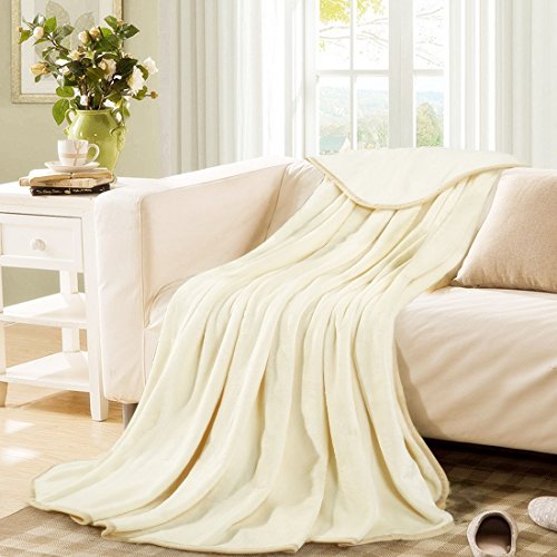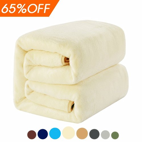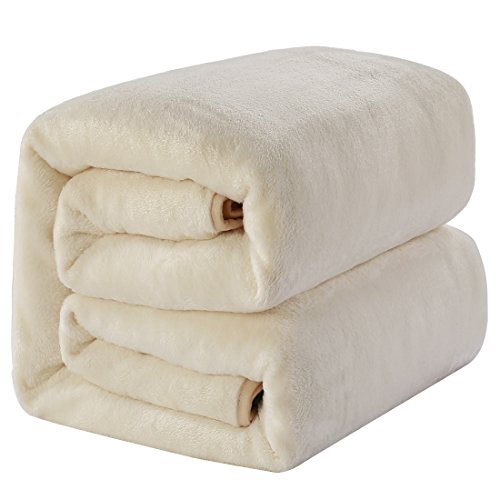 Queen Blankets Ivory Fleece Soft Warm Fuzzy Lightweight Bed Blanket by MEROUS