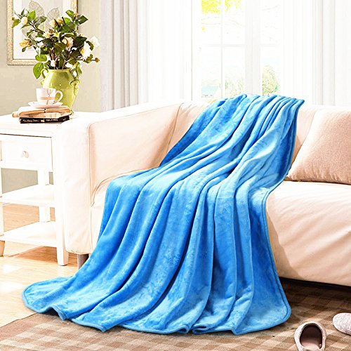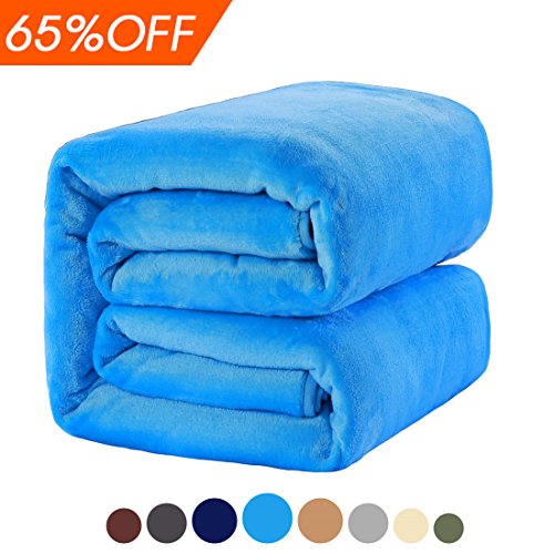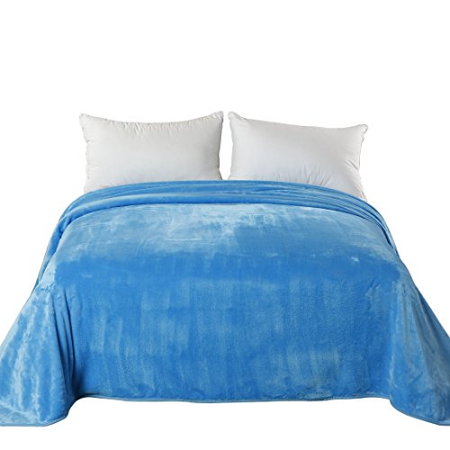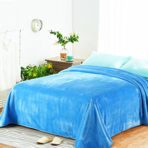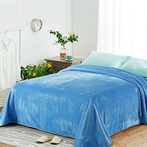 Queen Blankets Sky Blue Fleece Soft Warm Fuzzy Lightweight Bed Blanket by MEROUS