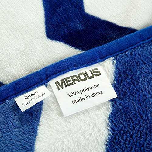 MEROUS Fleece Blanket 330 GSM Microfiber Lightweight All Season Blanket for Bed,Couch and Sofa-Soft,Warm,Easy Care ( Blue Print,Queen 90 by 90 Inch)