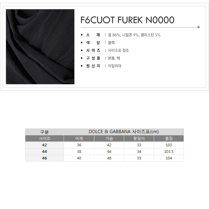 원산지/제조원 이탈리아 / 돌체앤가바나