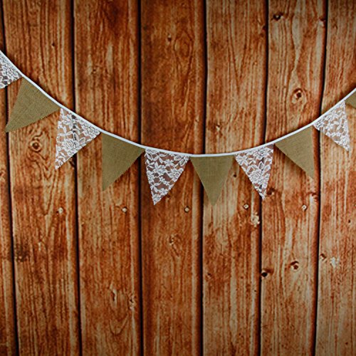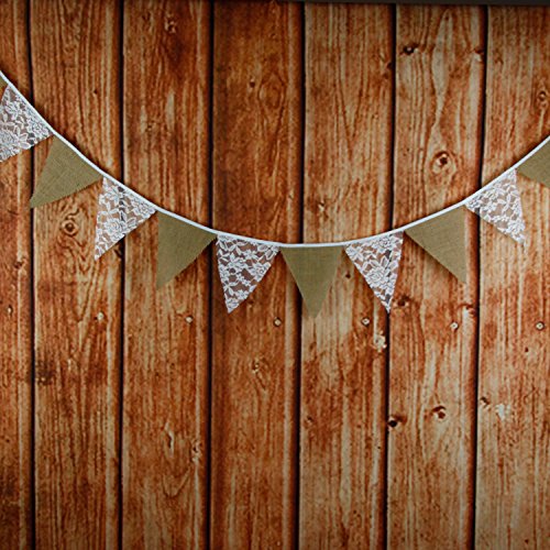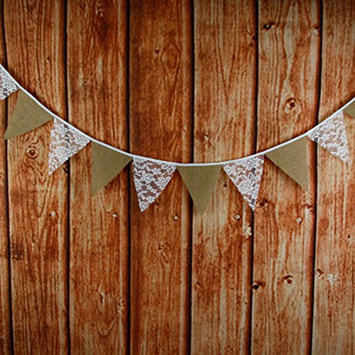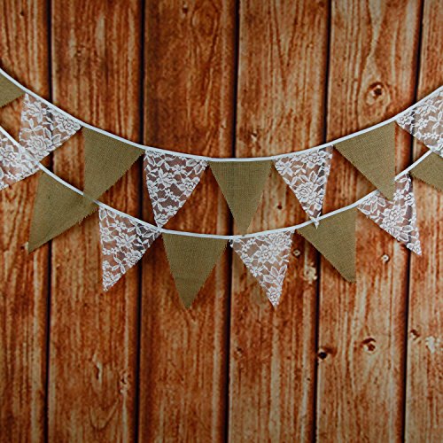 -. Title : INFEI Flower White Lace & Burlap Fabric Flag Buntings Garlands Wedding Birthday Party Decoration