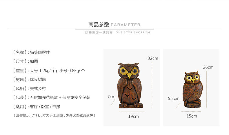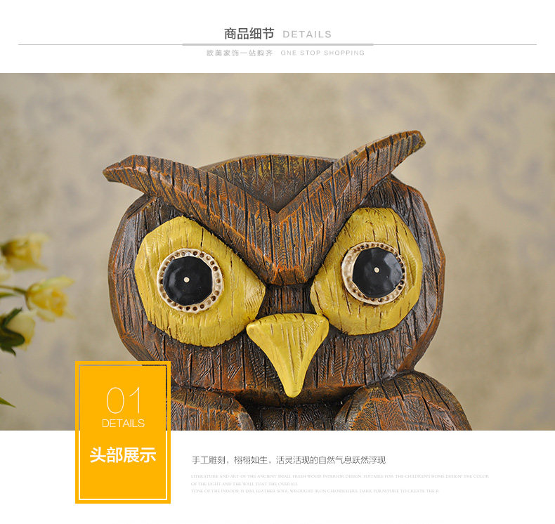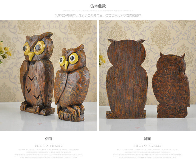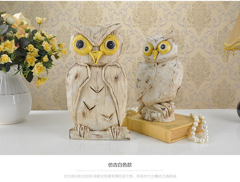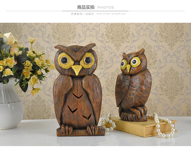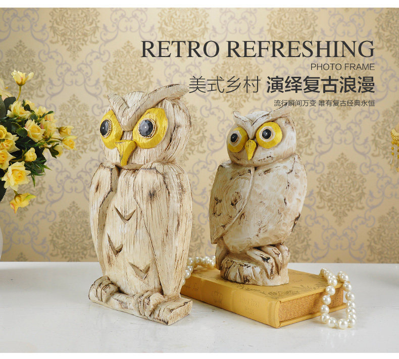 北欧美式复古家居装饰品创意摆件猫头鹰动物客厅软装树脂工艺品