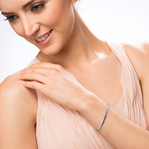 -. Feature : Metal: 925 sterling silver, rhodium plated, nickel free / Size: 7.5 inch in length, 4mm in width, lobster claw clasp
