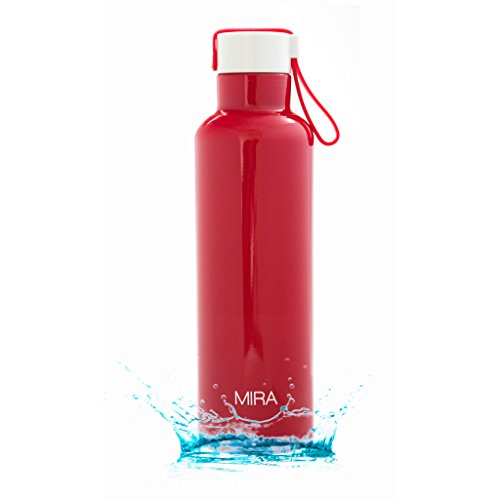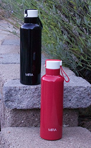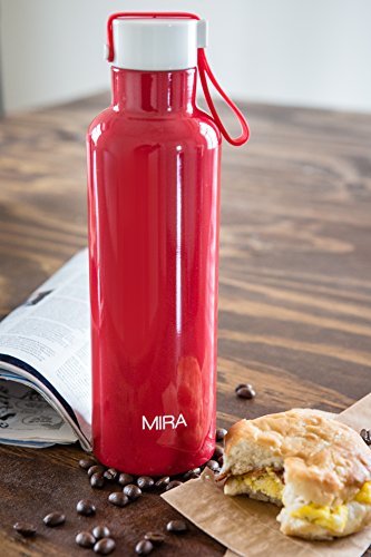 MIRA Vacuum Insulated Travel Water Bottle | Leak-proof Double Walled Stainless Steel Sports Water Bottle | Easy to Carry Handle Strap Lid | No Sweating, Keeps Your Drink Hot & Cold | 17 Oz (500 ml) | RedSturdy, Durable Quality: This sleek and rugged sports water bottle is made from high quality food grade 18/8 stainless steel that will not break. It is crafted and designed to last and should not rust.