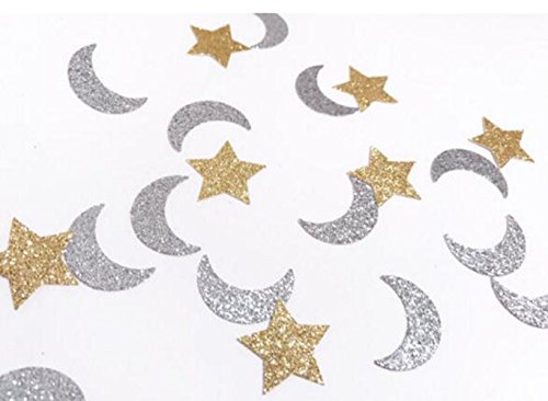 Double-Side Gold Glitter Star and Glitter Silver Moon Confetti Wedding Bithday Parties Bridal Shower Confetti Baby Shower Decorations Table Scatters Setting, 200pcs