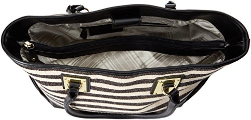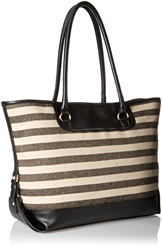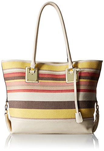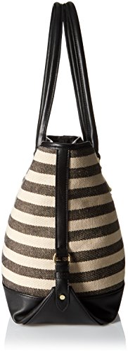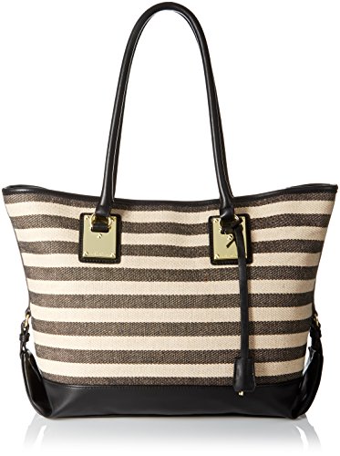 Plate hardware embellishment adds a little edge to graphic stripes on our carry-anywhere Manchester Tote with signature hanging key fob and top zip closure.