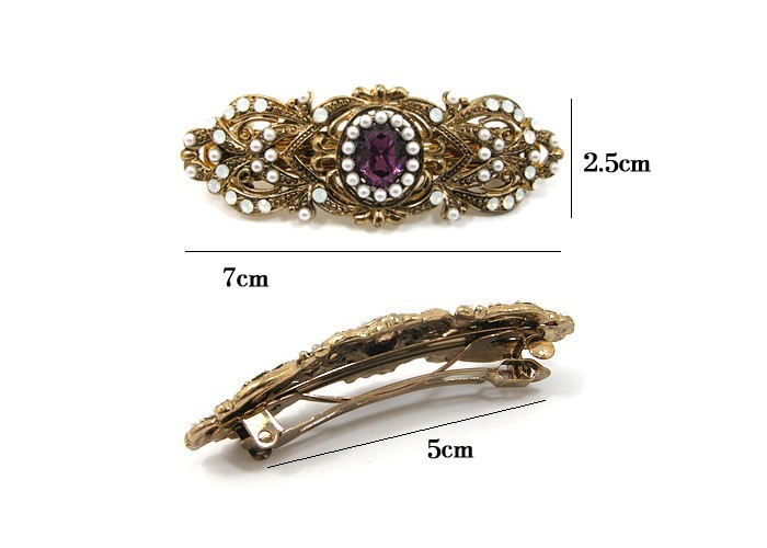 ***アンティーク調のデザインにパールとホワイトオパールクリスタルの装飾が綺麗☆それぞれのカラークリスタルによって違うストーリーを想わせるヴィンテージ風ヘアピン(バレッタ)です***【サイズ】幅70mm × 高さ25mm 【素材】合金、ブロンズアンティークメッキ、クリスタル、コーティング真珠、バレッタ※PC環境により色味が多少異なって見える場合がございます。予めご了承下さいませ。