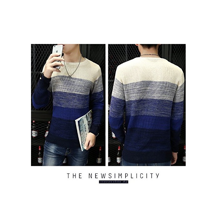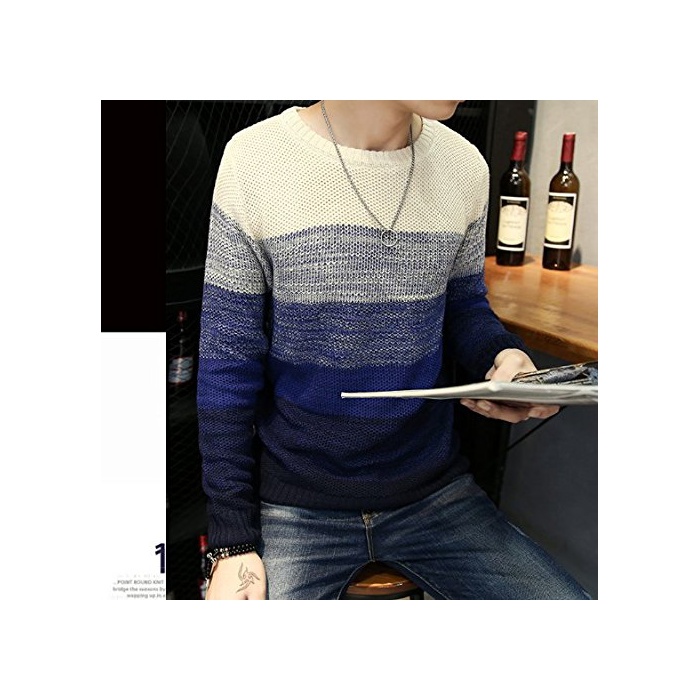 원본상품명: (M, ネイビ)春 グラデションカラ セタ メンズ ボダ クルネック ニット XL 赤 グリン レッド ブル