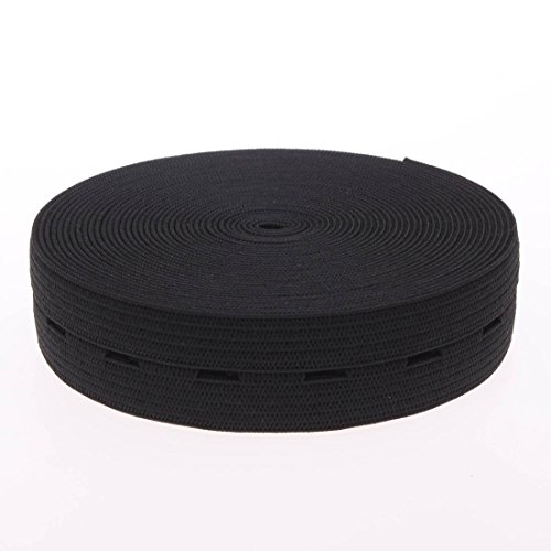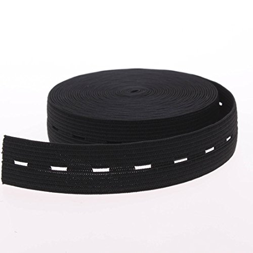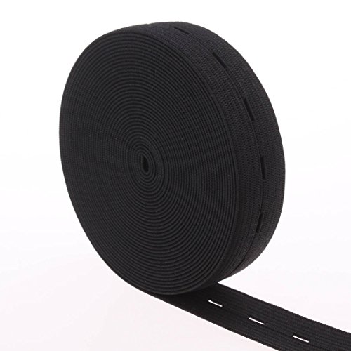 Cotowin 3/4-Inch Wide Black Knit Buttonhole Elastic 5 Yards + 5 Wood Buttons (11mm)