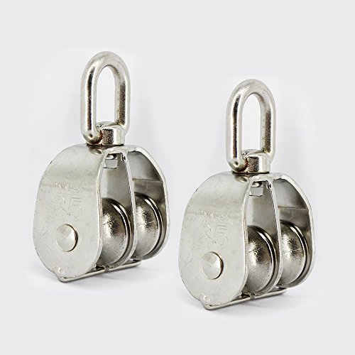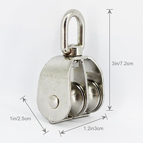 Evazstyle Double Pulley Rope Pulley Block Rope Hoist Set 304 Stainless Steel for Wire Rope Cable Great For Construction Work and Moving 2pcs