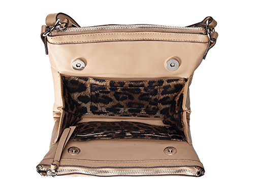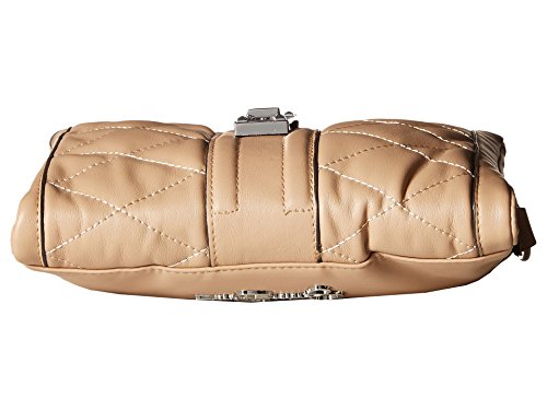 Exterior flaunts three zip pockets, brand hardware at back, polished hardware, and tonal stitching.